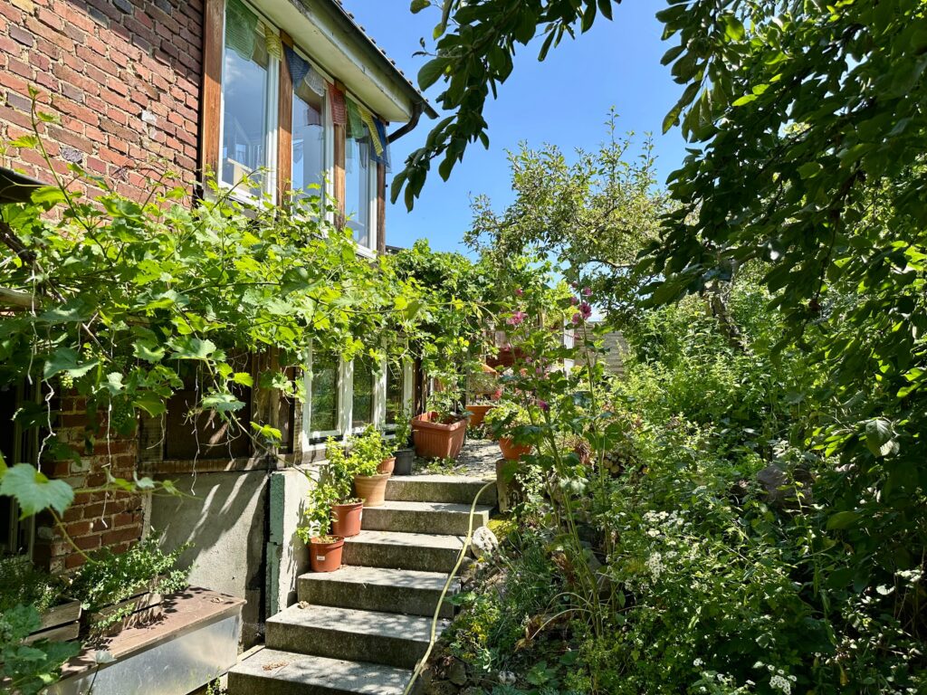 Unsere Vision So möchten wir unser Zusammenleben gestalten Haus vorne und teilweise Haus Mitte in der Holzgasse 11 in Alfter Haus hinten mit Blick auf Petras Wintergarten Hier geht es zum hinteren Teil unseres Gartens Haus Mitte und Übergang zu Haus Vorne